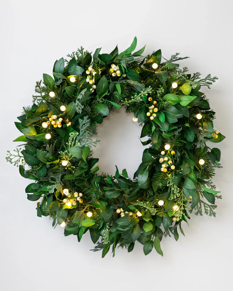 Couronne extérieur de cyprès à baies blanches