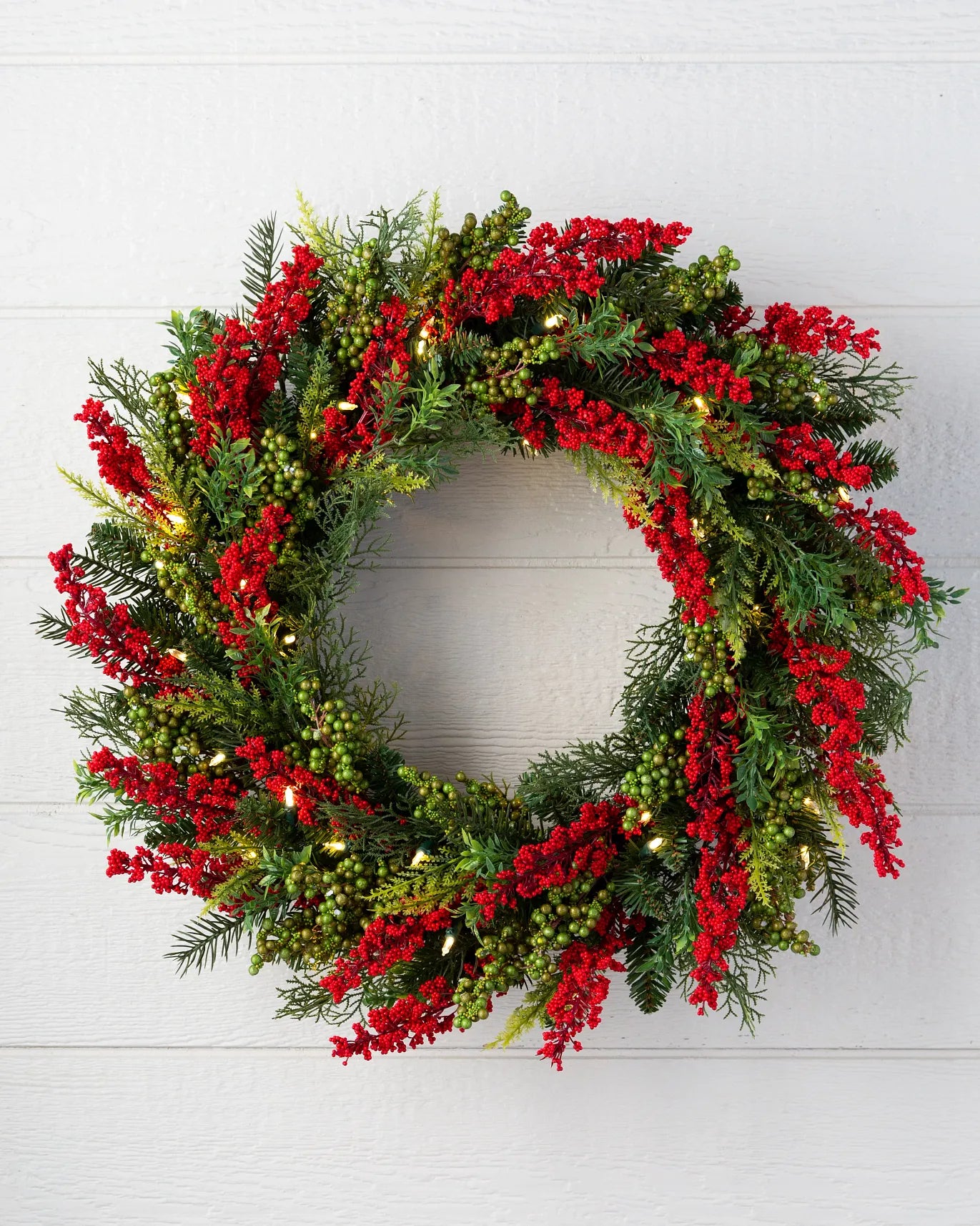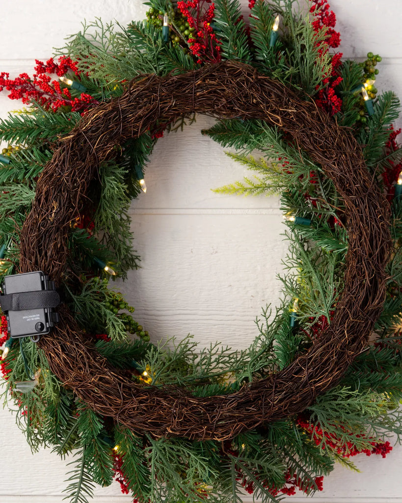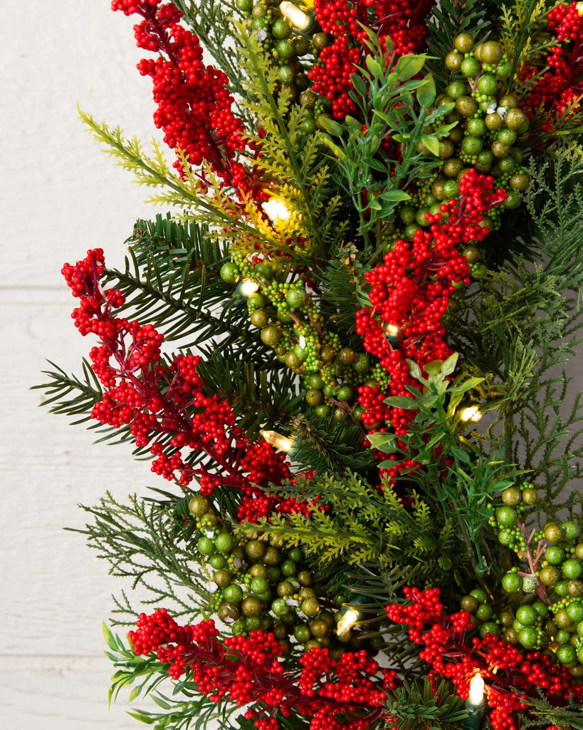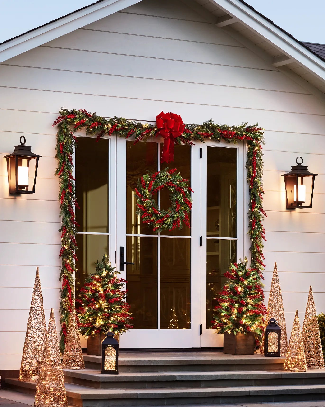 Accueillez vos invités dans les couleurs emblématiques de Noël et ornez vos fenêtres et porches de nos créations végétales parsemées de baies.