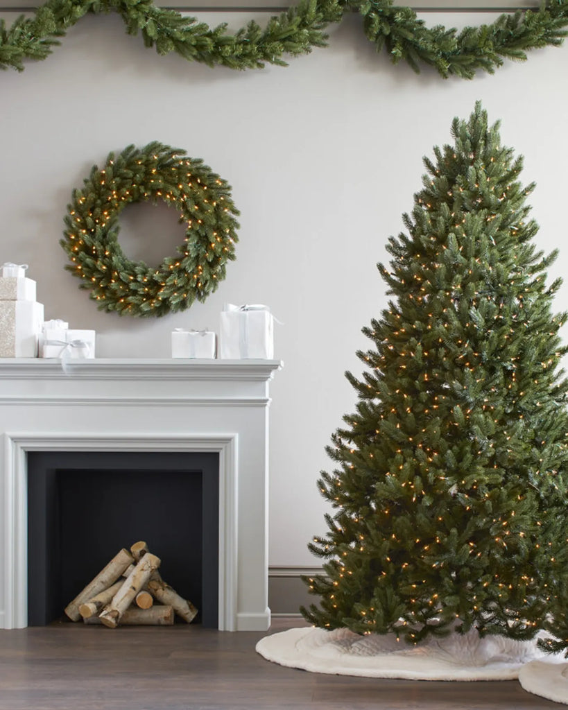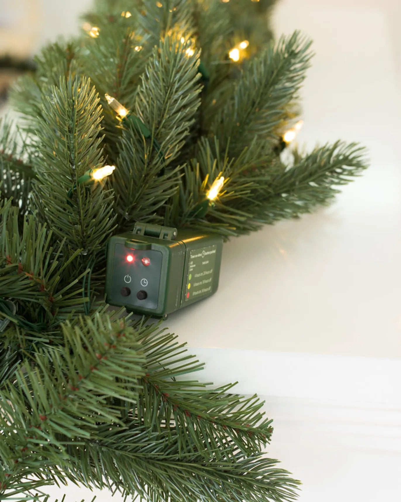 Nous utilisons les meilleures lumières certifiées UL du marché. Nous optimisons la quantité et la luminosité des ampoules afin d'illuminer chaque sapin d'une lueur festive, à la fois équilibrée et chaleureuse. Toutes les ampoules sont suspendues à la main afin de masquer plus efficacement les fils.
