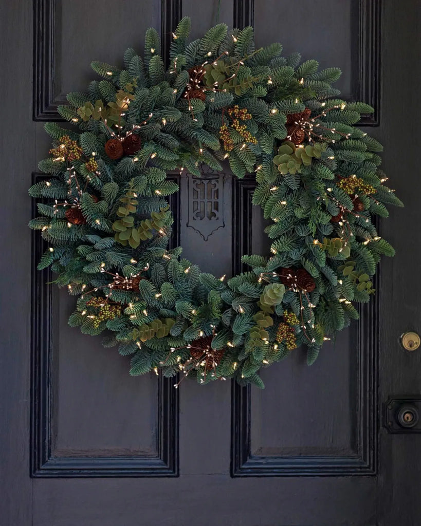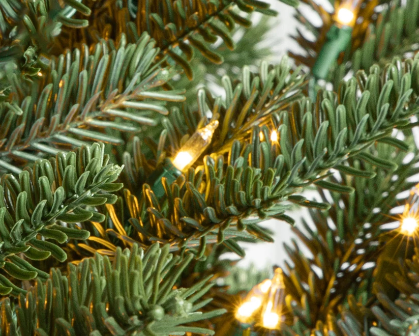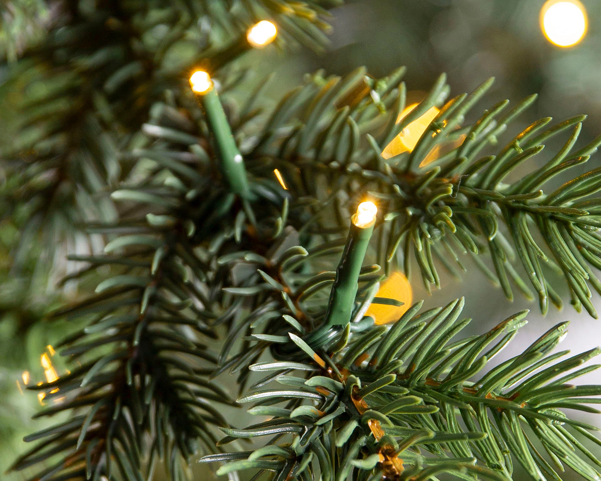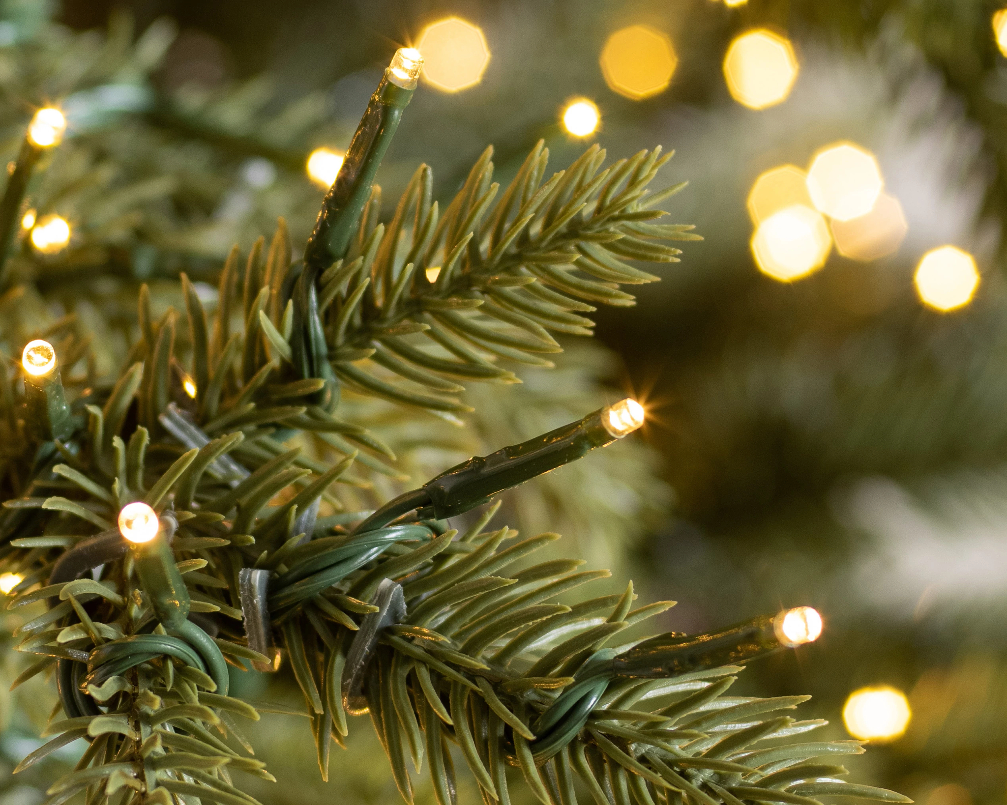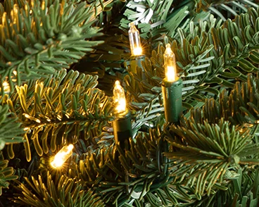 Nous utilisons les meilleures lumières certifiées UL du marché. Nous optimisons la quantité et la luminosité des ampoules afin d'illuminer chaque sapin d'une lueur festive, à la fois équilibrée et chaleureuse. Toutes les ampoules sont suspendues à la main afin de masquer plus efficacement les fils.