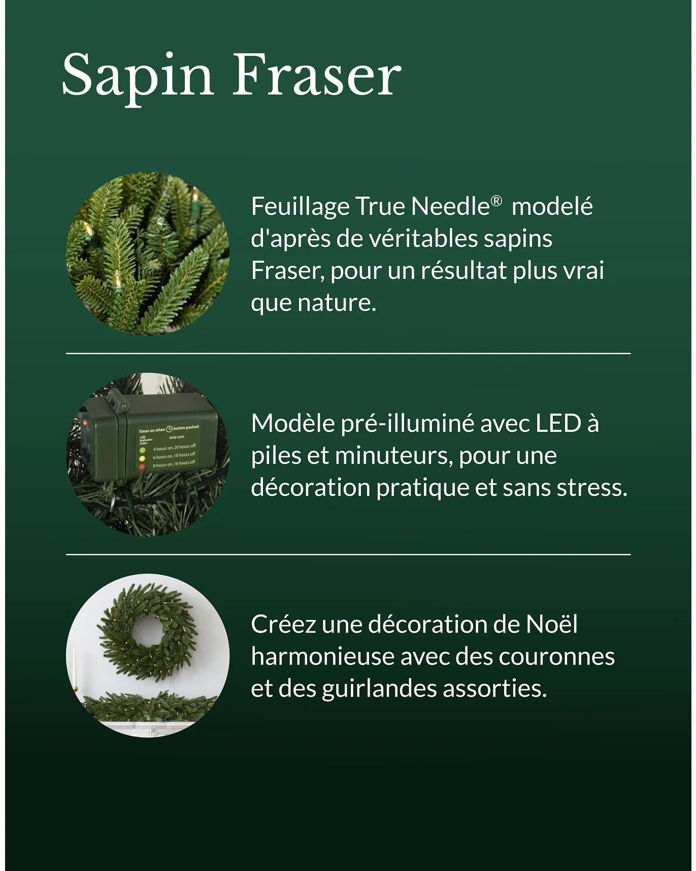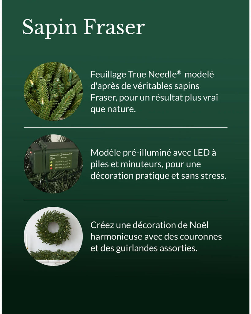Apportez de la chaleur et du charme à vos espaces grâce à l'élégance infaillible d'un classique très apprécié. Confectionnée avec les mêmes aiguilles réalistes que nos sapins Fraser, cette collection végétale vous aide à créer un Noël idéal chez vous.