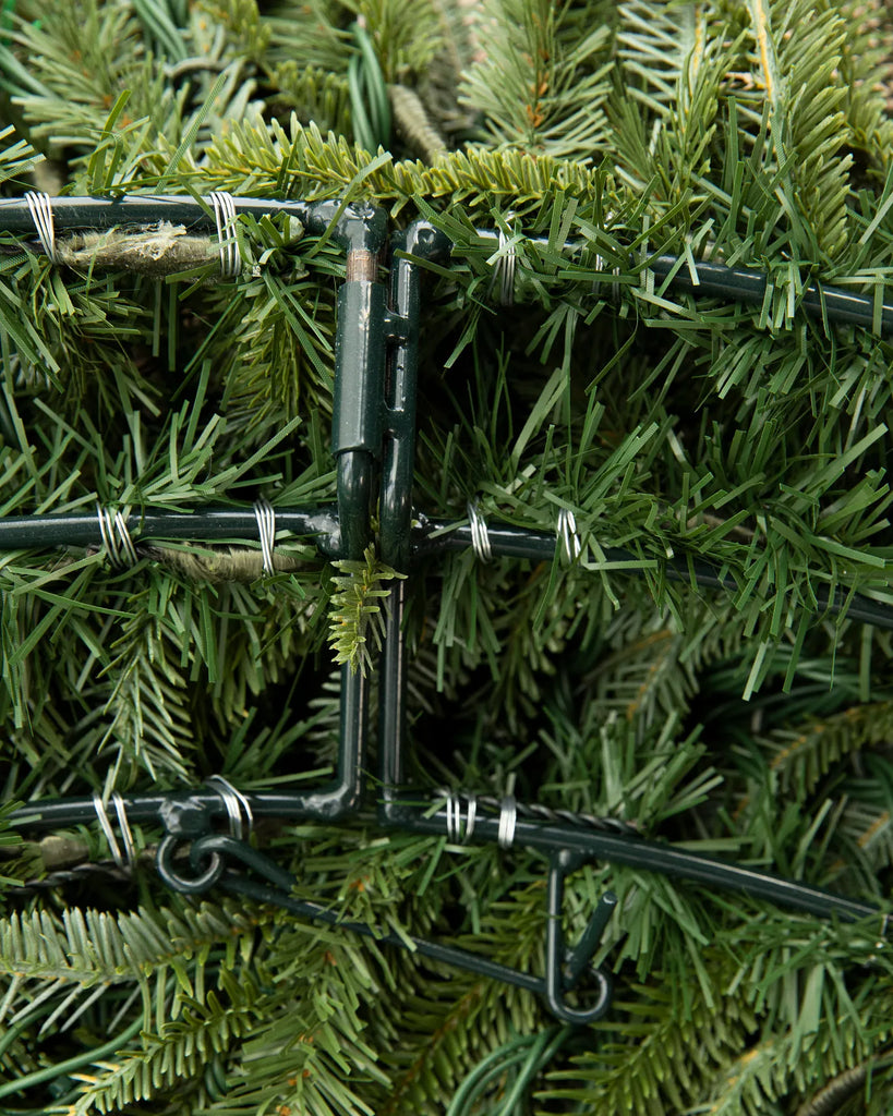 Nous utilisons les meilleures lumières certifiées UL du marché. Nous optimisons la quantité et la luminosité des ampoules afin d'illuminer chaque sapin d'une lueur festive, à la fois équilibrée et chaleureuse. Toutes les ampoules sont suspendues à la main afin de masquer plus efficacement les fils.